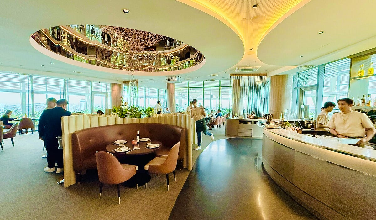 It’s the restaurant equivalent of a sunny afternoon at a harbour (just up in the clouds) — calm, bright, a bit glamorous, with the gentle reminder that someone in the kitchen has put serious thought into how your meal should make you feel.