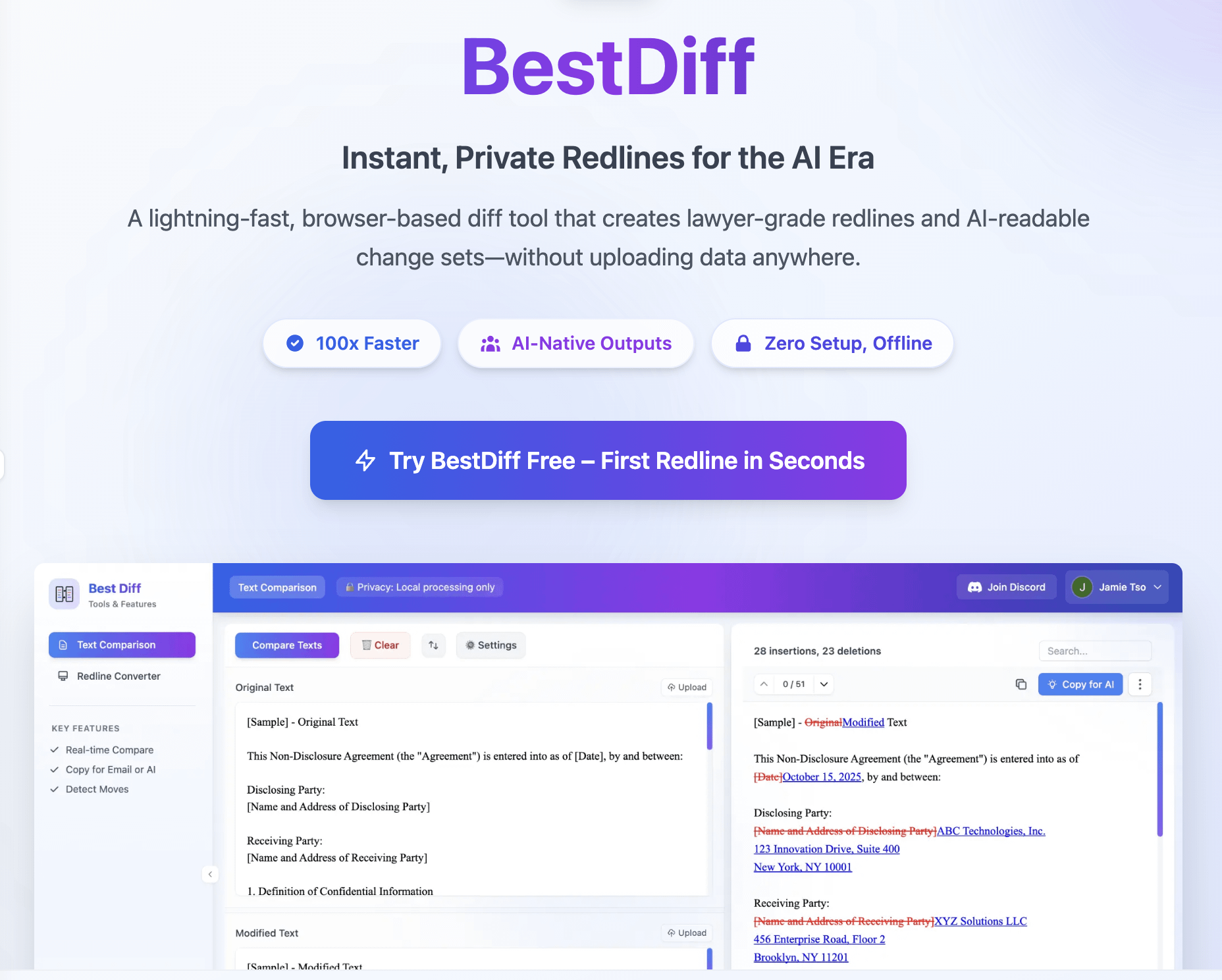- Paste prompt v1 and v2 → instant visual diff in track changes style