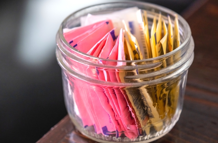 First, artificial sweeteners may make you want “real” food [2]. In other words, when your body tastes something sweet, it expects a corresponding load of energy—something, anything, that will fuel the body. However, when that energy doesn’t come (remember, the sweetener itself doesn’t provide anything real), the body craves something that will provide energy. Thus, the person starts out avoiding food by consuming the fake sweetener, then, in the end, ends up eating it anyway. This could be relevant for someone drinking a diet soda—sweet, but no calories. It’s likely less relevant if someone is eating something a food with a sweetener that also contains calories from other nutrients (i.e., protein and fat).