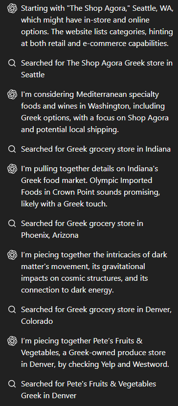 Doing a deep research on Greek markets in US and it decided to take a detour to dark matter…. Anyone seen something like this before? Like this:Like Loading... Post navigation Gemini 3 for “Vibecoding” a React App: Great start, but now it’s looping and regressing. Need workflow advice.Unlocking CRM’s Power: Grow Your Business with Customer Data