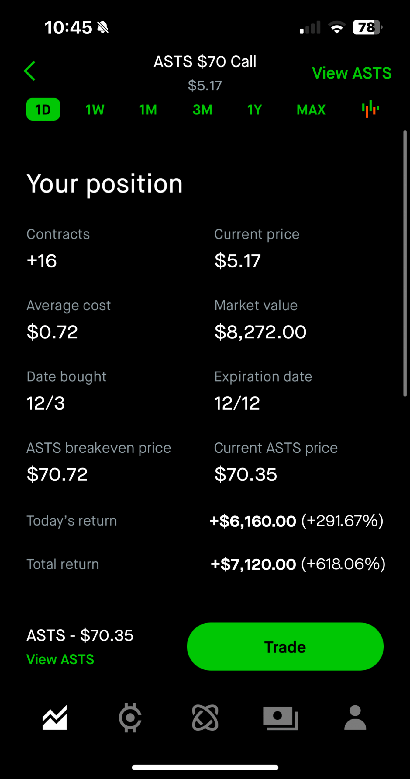 I bought ASTS 70c in the last 1.5 hours before yesterday's close at an average price of 0.72