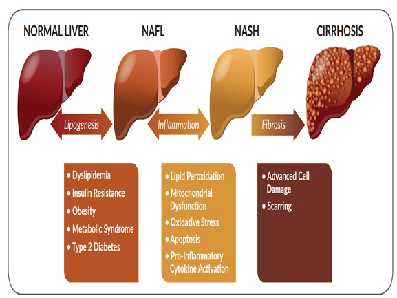 Due to the deposition of fats in the Patients Suffering from NAFLD, there is an inflammation and necrosis (death of tissues of the liver). The presence of dead tissues and inflammation lead to a chronic disorder known as Non-Alcoholic Steato Hepatitis (NASH). The word Steato means fat and Hepatitis means inflammation of the liver. Patients who are suffering from NASH are at the risk of developing cirrhosis.