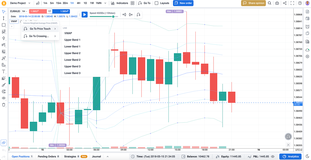 What makes it stand out is realism. It uses tick-by-tick data, floating spreads, real commissions, and slippage. When you test a system here, it feels close to live trading. You can open and close orders right on the chart, set partial closes, breakevens, and trailing stops — all while watching the equity curve evolve in real time.