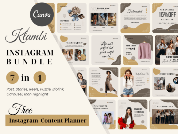 Looking to level up your Instagram game without spending hours designing content from scratch? Meet the Klambi Instagram Bundle — a stunning 7-in-1 Canva template pack crafted especially for fashion creators, influencers, and boutique brands. With templates for Posts, Stories, Reels, Carousels, Biolinks, Puzzles, and Icon Highlights, this stylish set helps you maintain a consistent and professional aesthetic across your entire Instagram profile.