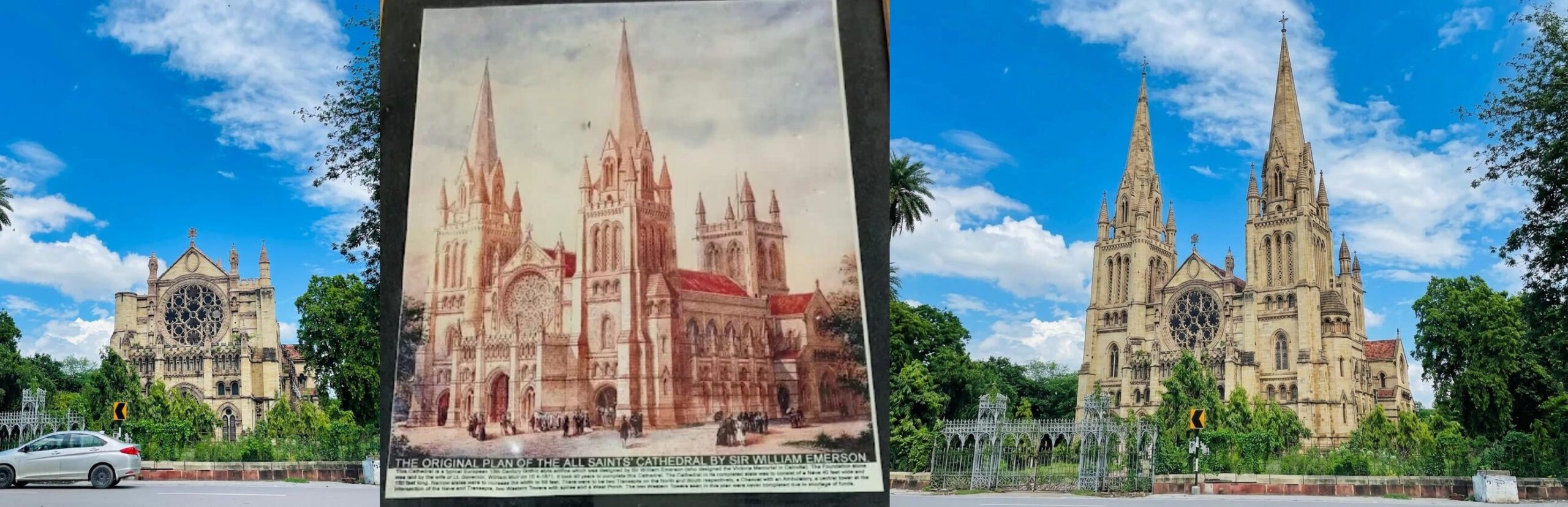 This Cathedral is located in Prayagraj, India. The first image shows the church as it exists today. The second image is the original architectural plan that was envisioned but never fully built. The two Western Towers seen in this plan were never completed due to a shortage of funds. Using both references, I generated a third image with Google Gemini 3 Pro to recreate how the church would realistically look if the original plan—including the full towers—had been completed.
