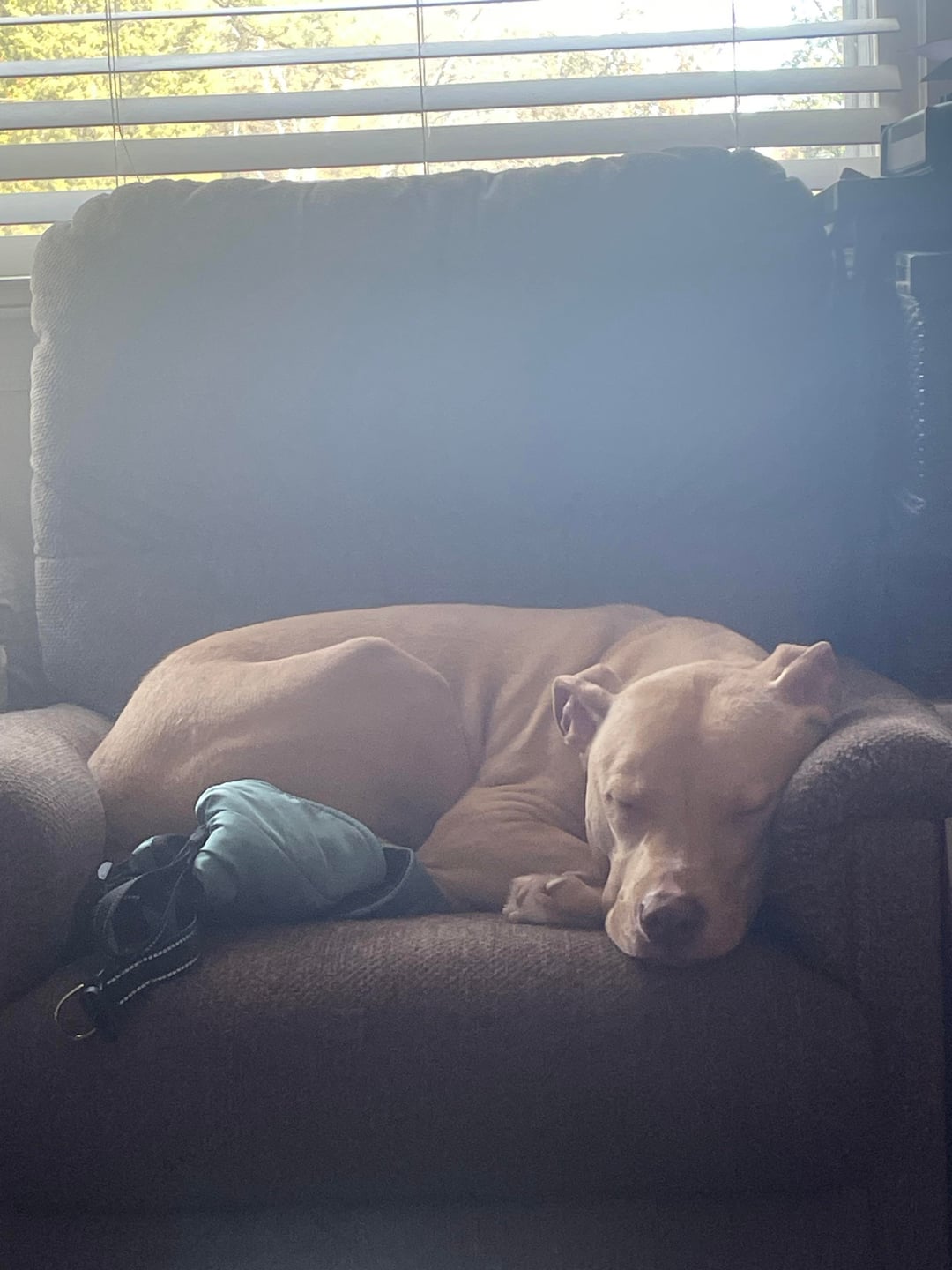 Brought the rocking chair out of my sister’s room and the big guy Akimba went and laid right on it! That use to be his favorite chair in her room.