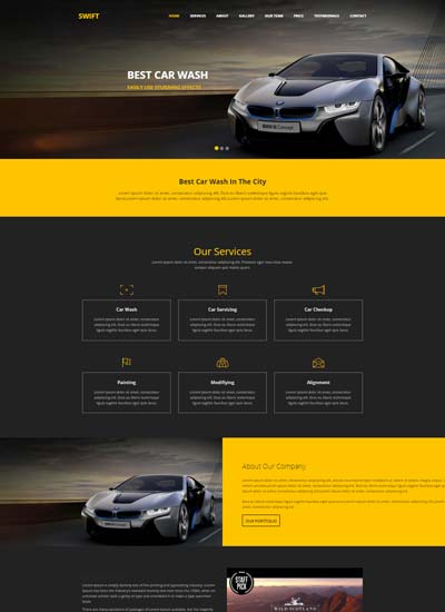 Swift Car Wash HTML Website Template is well designed modern bootstrap theme suitable for car servicing workshop, car wash, car accessories and corporate business such as consultancy, services. The template is fully responsive and mobile-ready. It has the ability to function faultlessly on all types of browsers and modern devices and adapts suitably to small, big or widescreen resolutions.This template is built using the latest Bootstrap framework with html5 and css3 which is very easy to customize. Download for free.