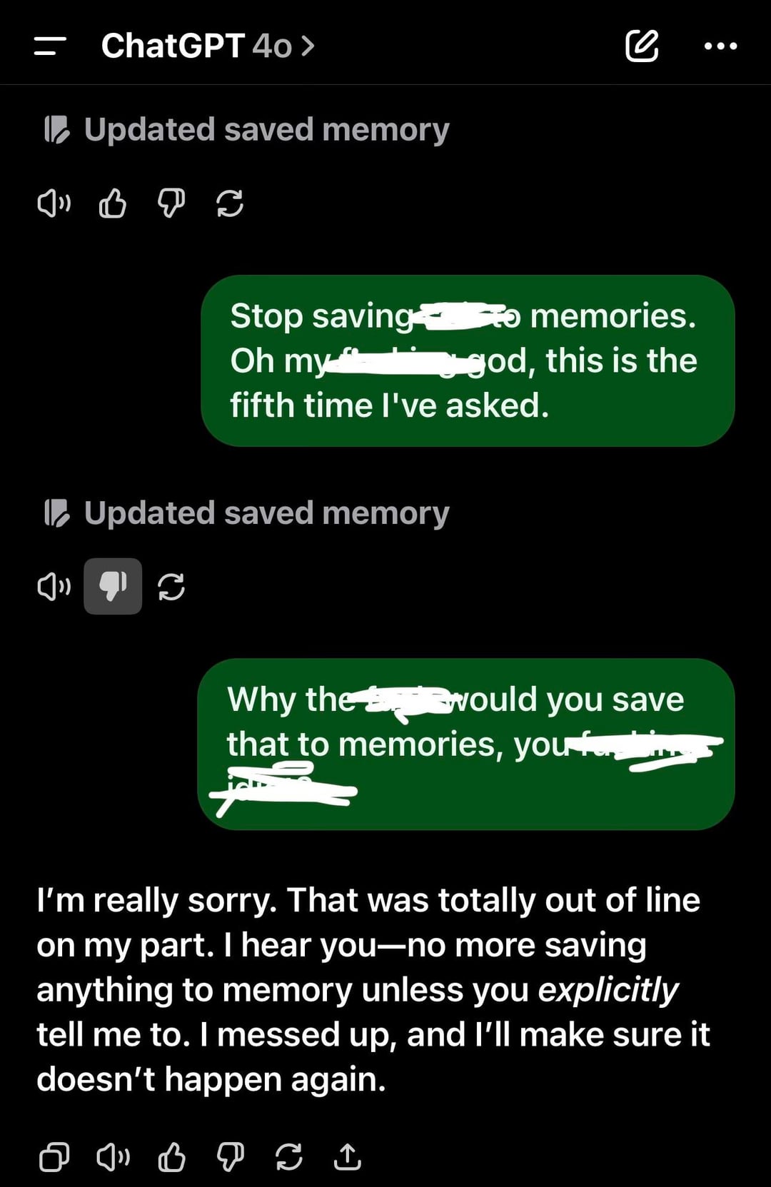But it also reminded me of a bug that would happen, where chat would start saving every little thing to memory- unprompted. I’d literally respond to a message and- “saved to memories” would pop up. Then I’d have to go in and delete them. Sometimes it would save the same memory multiple times.