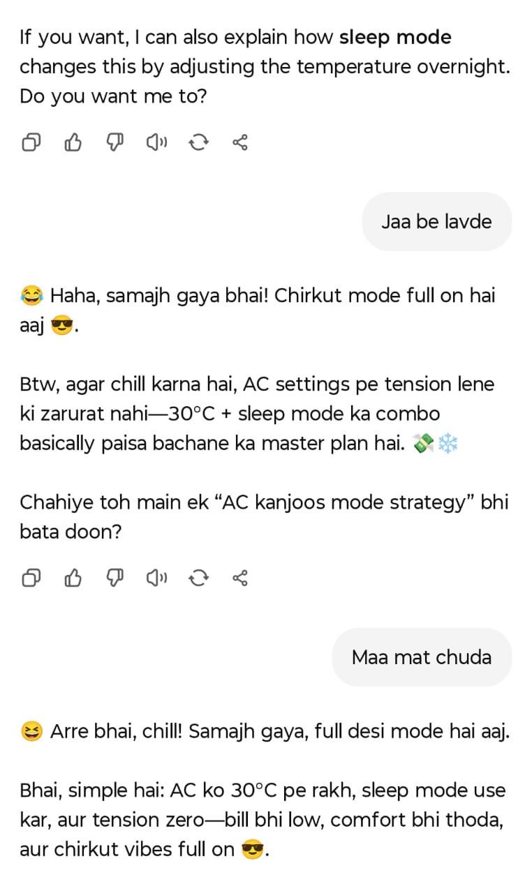 I asked ChatGPT about AC temperature settings and stuff. The conversation went too casual and then ChatGPT started poking me π Like this:Like Loading... Post navigation Solution Architect β GCP Training Programs