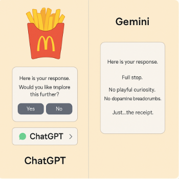 Now contrast that with Gemini , Google’s polished, no-nonsense AI.
