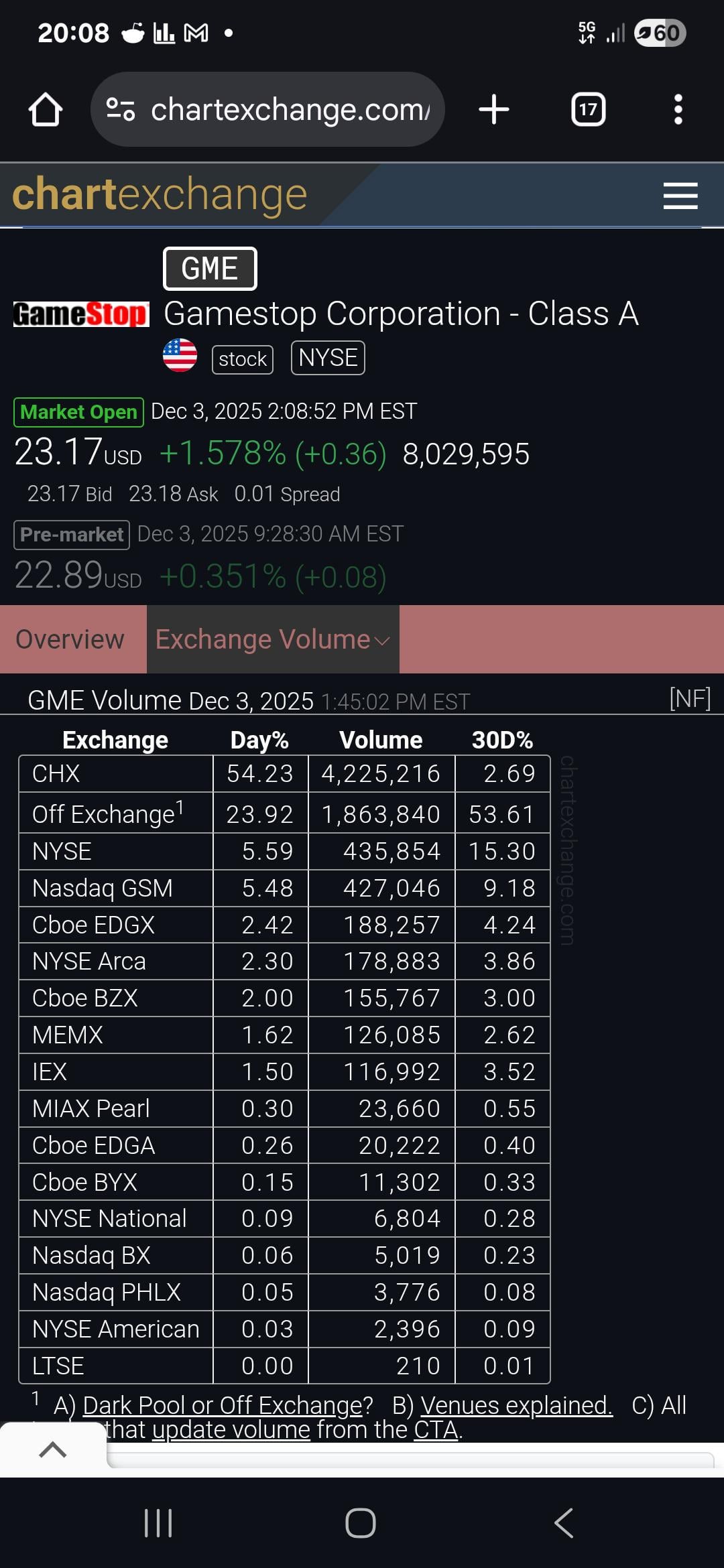 Keep in mind last run up they had 10% CHX volume 2 days before..GME WENT from 10 to 80 Usd.
