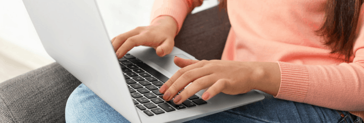 Woman's hand typing on laptop with text "13 Common Blogging Mistakes"Woman's hand typing on laptop with text "13 Common Blogging Mistakes"