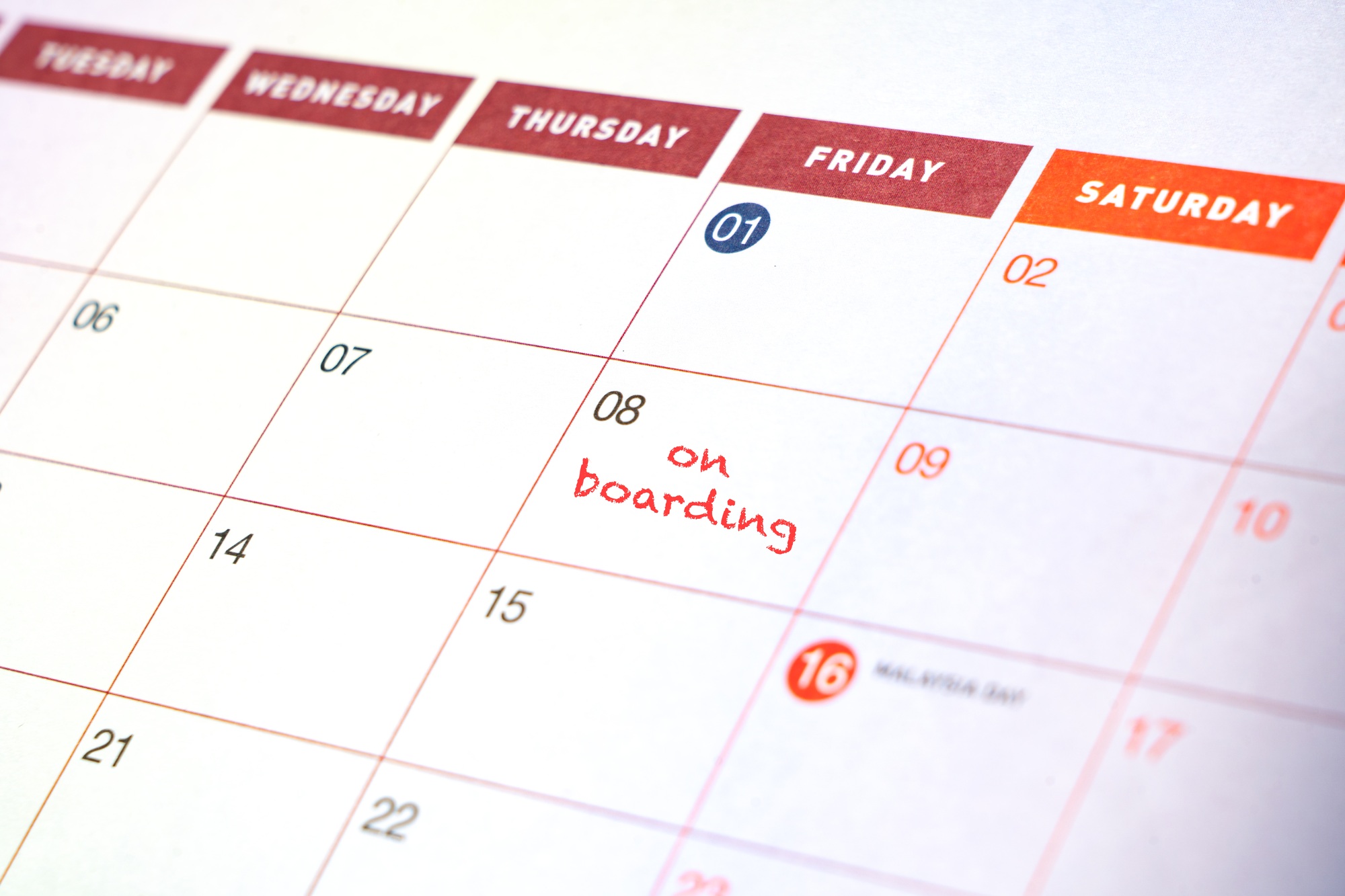 To ON BOARDING written on calendar