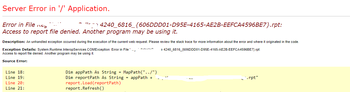 Access to report file denied. Another program may be using it.