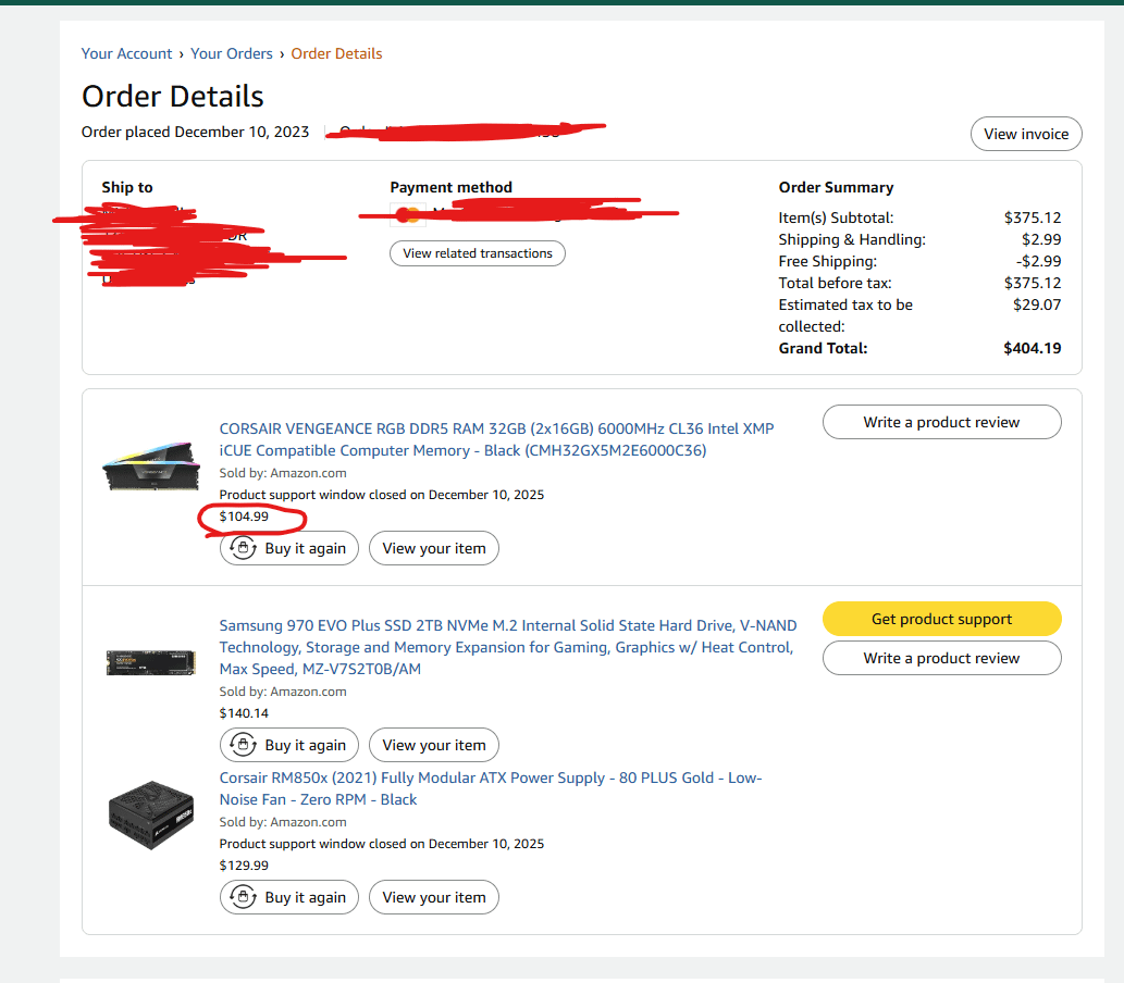 This entire order is the amount for ram now which is 500 bucks