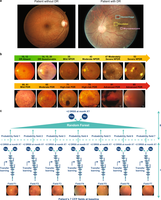 This study is based on the post hoc retrospective analysis of stereoscopic 7-field CFPs obtained from eyes with DR in the RIDE (NCT00473382)33,34,35 and RISE (NCT00473330)33,34,35 phase 3 studies at baseline (start of the studies) that were not treated with anti-vascular endothelial growth factor (VEGF) therapy. RIDE and RISE were registered on 13/05/2007 with the title “A Study of Ranibizumab Injection in Subjects With Clinically Significant Macular Edema (ME) With Center Involvement Secondary to Diabetes Mellitus” and can be accessed via the ICTRP portal at the following URLs: RIDE at http://apps.who.int/trialsearch/Trial2.aspx?TrialID=NCT00473382, RISE at http://apps.who.int/trialsearch/Trial2.aspx?TrialID=NCT00473330.