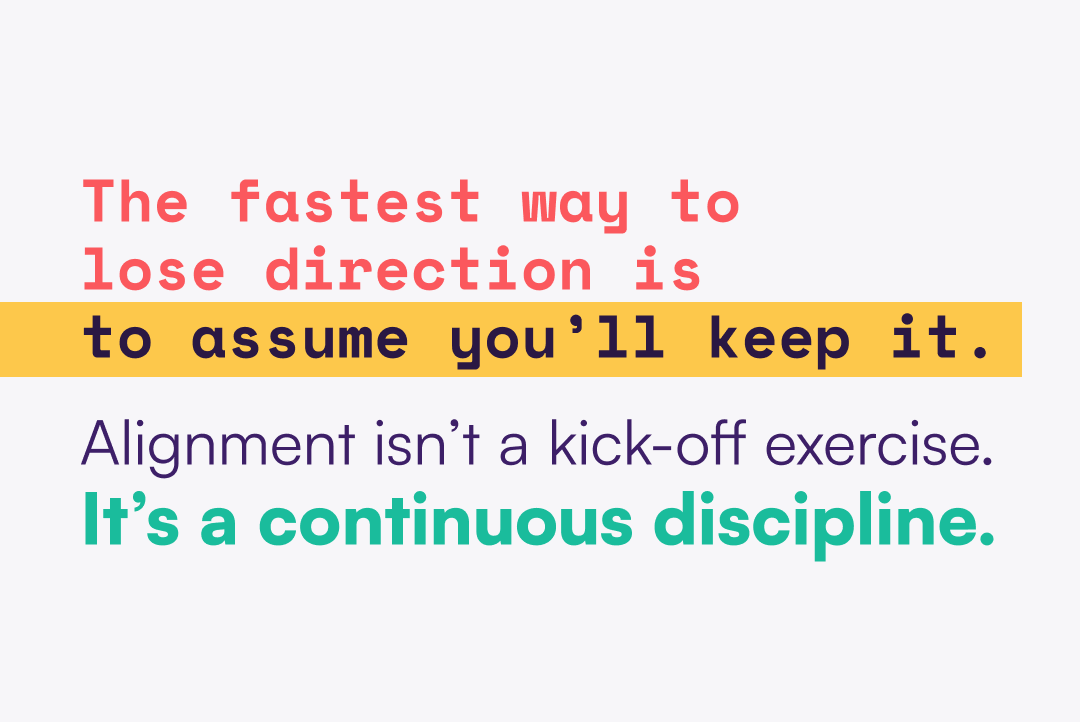 Most teams assume they’re aligned. They start building fast, confident that everyone shares the same destination. But alignment isn’t a kick-off exercise, it’s a continuous discipline.