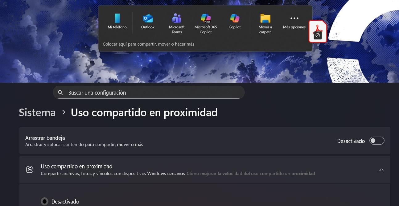 Settings > System > Nearby sharing > Disable ‘Drag Tray’
