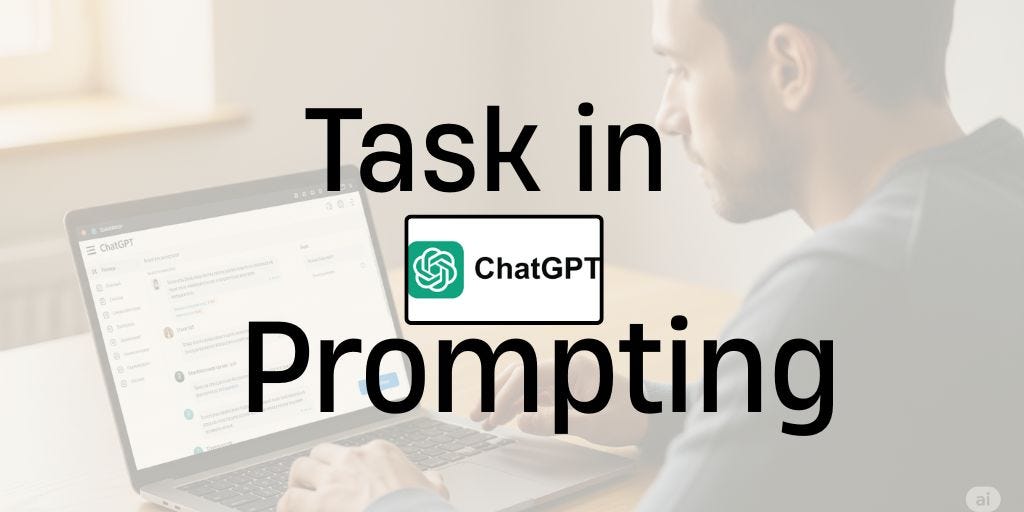 In prompting, your task is the core instruction form. It tells the model what job it needs to complete, such as writing, analyzing, summarizing, designing, critiquing, imagining, problem-solving, or structuring.