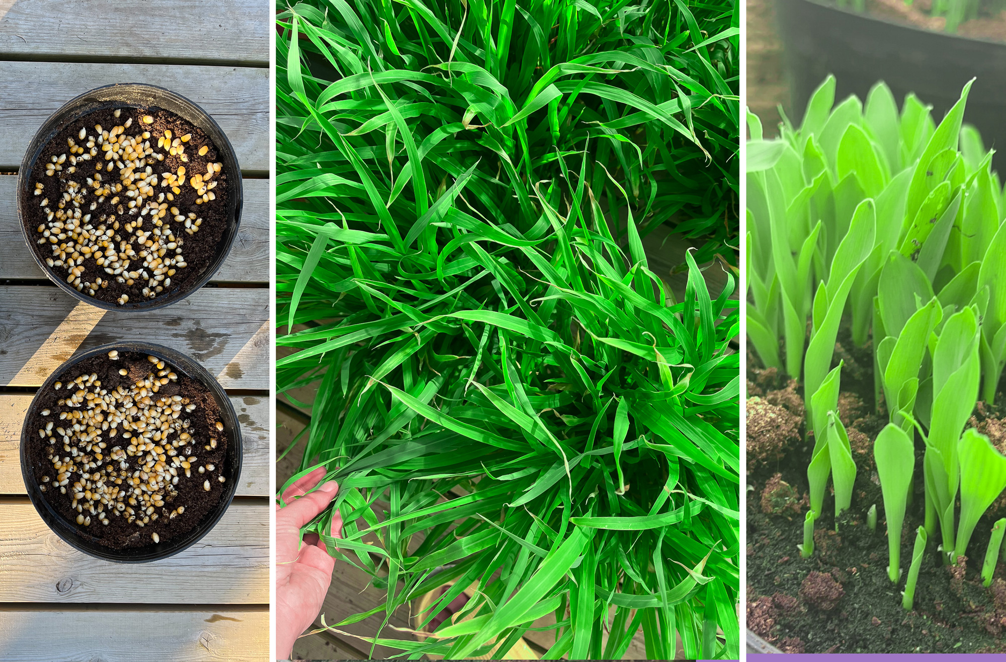 Men det å dyrke maiskolber er en helt annen prosess – som vi også har skrevet et eget innlegg om. Det som er trenden nå, er å plante kornene tett-i-tett og bruke det som prydgress.