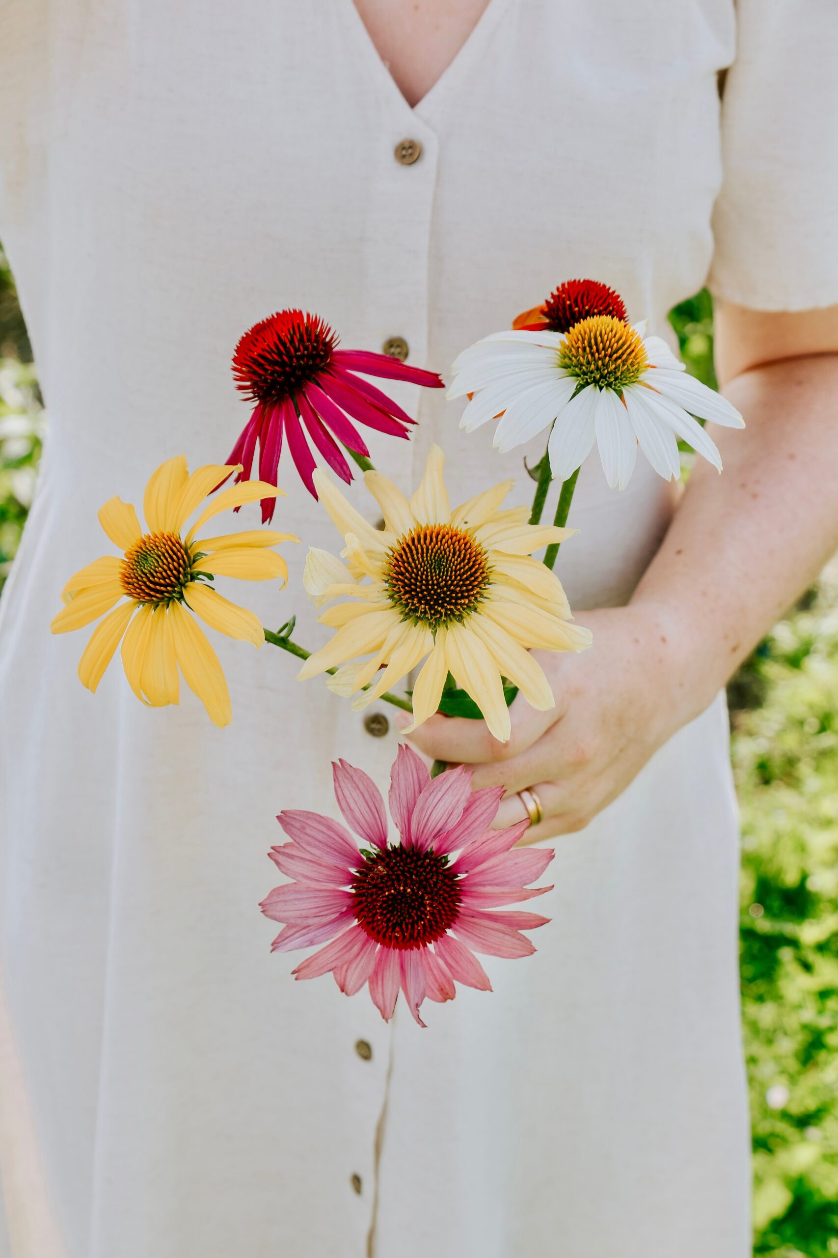 Deze mix van zonnehoed is een klein feestje. Een mengeling van bloemen met diverse kleuren en vormen die erom bekend staan vlinders te lokken.