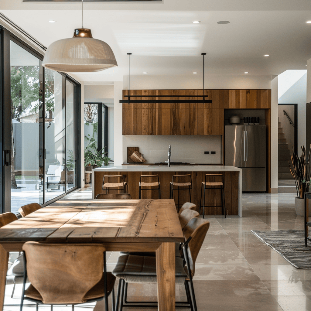 Integrating natural materials, such as wood, stone, or plants, can help soften the clean lines of a modern dining room and create a sense of warmth and organic beauty.