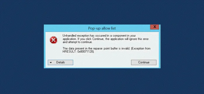 Error 0x80071128: The data present in the reparse point buffer is invalid Like this:Like Loading... Post navigation Manager Nursing – Labor and DeliveryWhy U.S. Medicaid is a Pathetic Health Care Program for the Poor