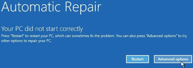 - A aquesta pantalla s’ha de seleccionar Opciones Avanzadas.