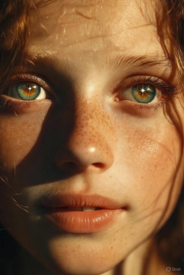 The second image—the GPT one—is symmetrical, smooth, and… hollow. It looks like something made to pass as human, rather than something made to be human. The first—Grok’s—isn’t perfect, but it’s alive. There’s something in the shimmer of the eyes, the chaos of freckles, the subtle imperfection of her parted lips. She looks like she could cry. Or speak. Or remember.