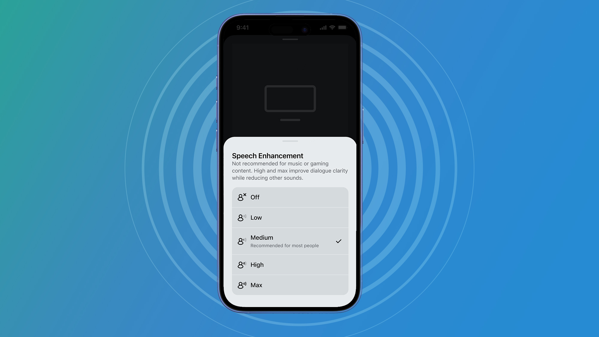 Despite the RNID’s involvement, the new mode isn’t designed to be solely for the hard of hearing. It’s still just called Speech Enhancement, as it is now, and it’s not hidden away like an accessibility tool – sound is improved for everyone, and ‘everyone’ now better includes people with mild to moderate hearing loss. The Low and Medium modes can also just function for those of us who need a bit of extra clarity in busy scenes.