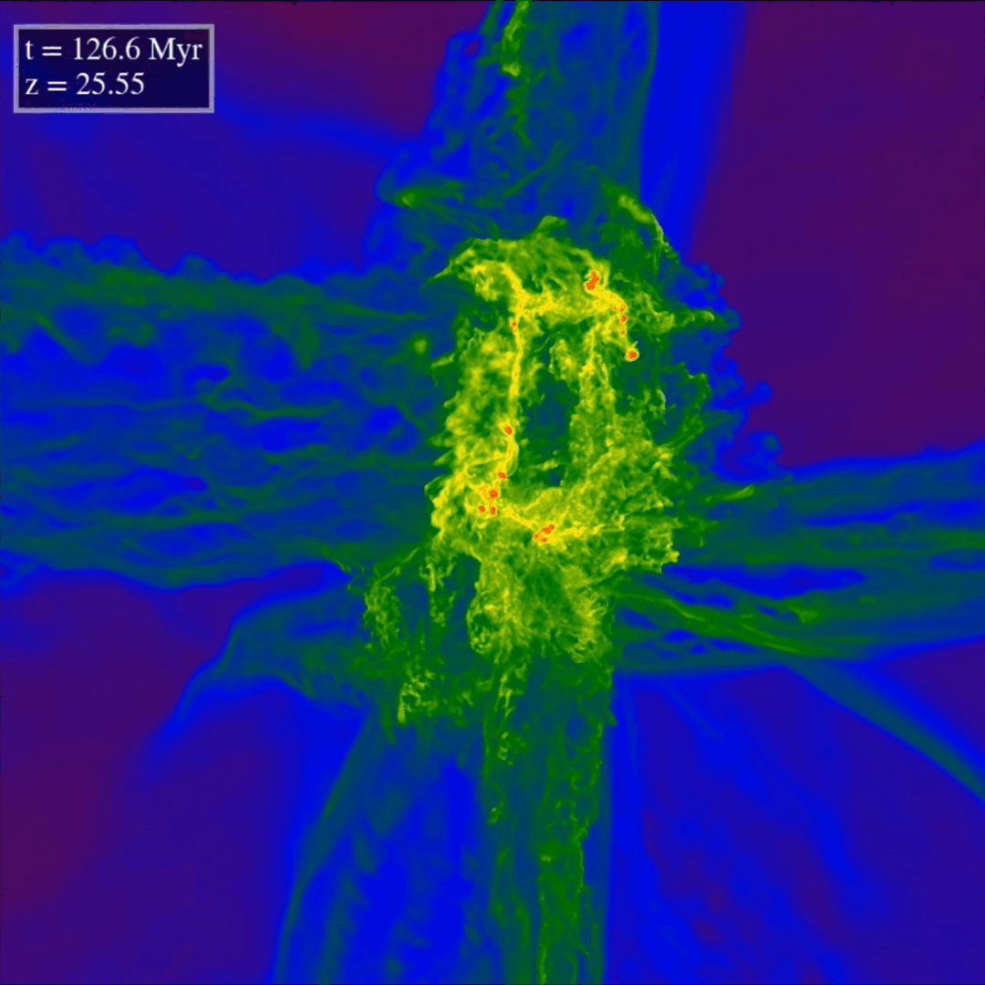 The above simulated video shows the birth of a primordial quasar that was made possible by one of these giant stars.