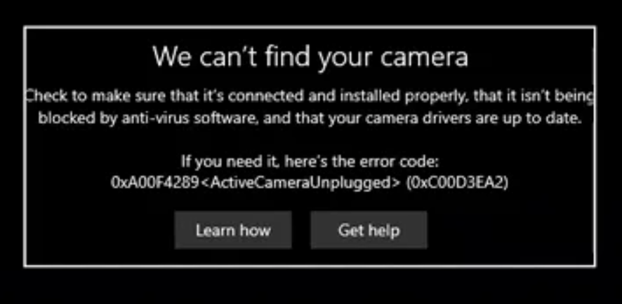 Problem: When user trying to access webcam using the built-in Camera app in Windows 10, 0xA00F4289, 0xC00D3EA2, and 0xA00F4244 error code prompt together with some troubleshooting steps. This error prevents the user from using the camera on collaboration tools such as Zoom or Microsoft Teams.