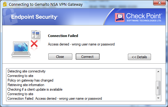 After a mysterious event in which my certs were revoked, I was forced to create a set of new ones. That’s when the VPN problems started. Every time I tried to connect with the Check Point client, it failed with this error: