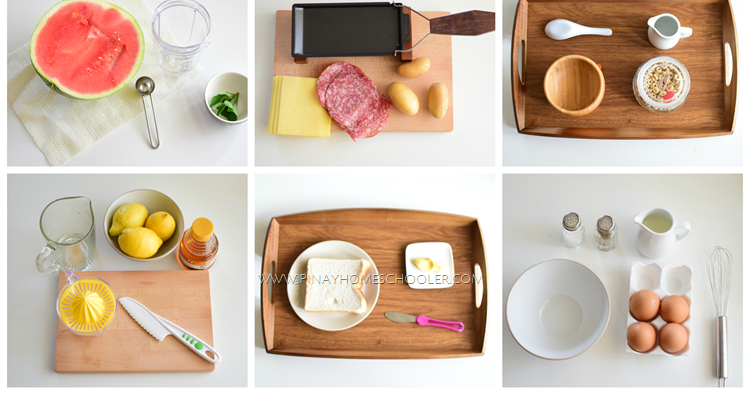 I don’t often share the practical life activities (in the kitchen) of the kids because I seldom take photos of them while working. Mostly, because they handle some delicate materials and I wanted to give my full attention whenever we work in the kitchen. Now that Vito is quite adept in this area, I started taking pictures to demonstrate some of the things that he can work on independently. These are mostly breakfast and snacks preparations. And because our main meal involves boiling oil or water and meat, only the big brother can participate on this not Vito (3 years old).