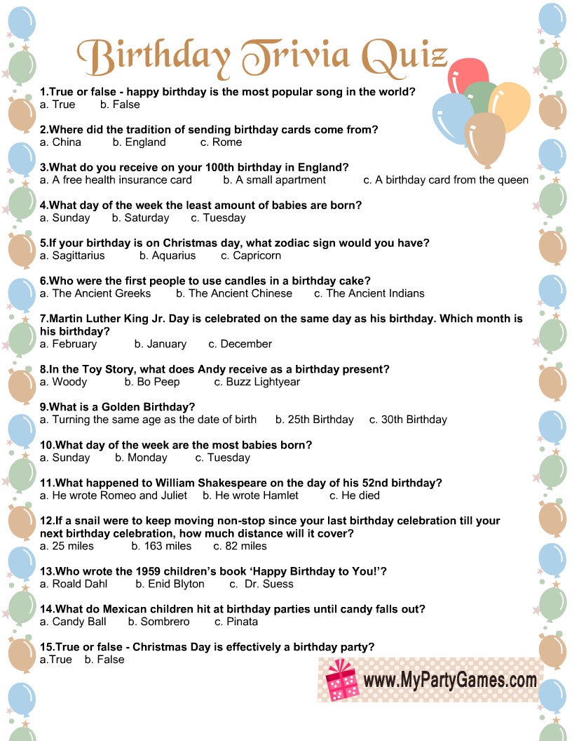 Free Printable Birthday Trivia Quiz with Answer Key Like this:Like Loading... Post navigation Just a moment…Just a moment…