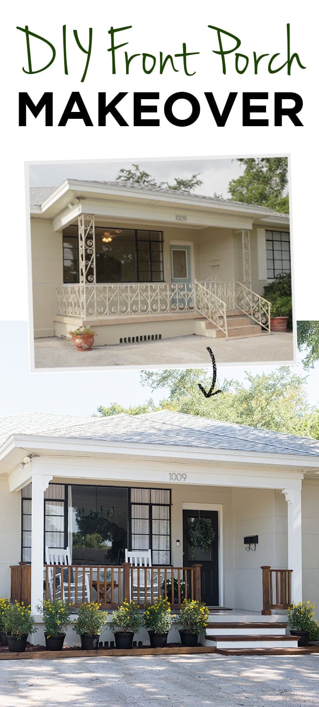 After adding a window on the left side of the house during our Reading Nook project, our first big porch project was to replace the old metal railing, which you can read all about in this DIY railing post.