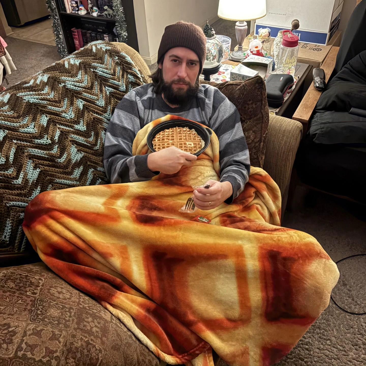 Had hernia surgery and all I wanted was a Waffle House waffle, my wife set me up with a waffle blanket and a fresh waffle upon returning home