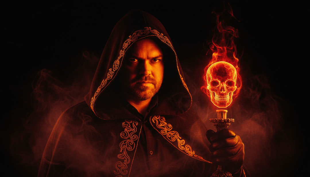 a photorealistic image of this person clutching a flashlight in a collapsing basement, orange beam illuminating their horrified expression, cobwebs and smoke swirling behind, high-contrast horror framing.