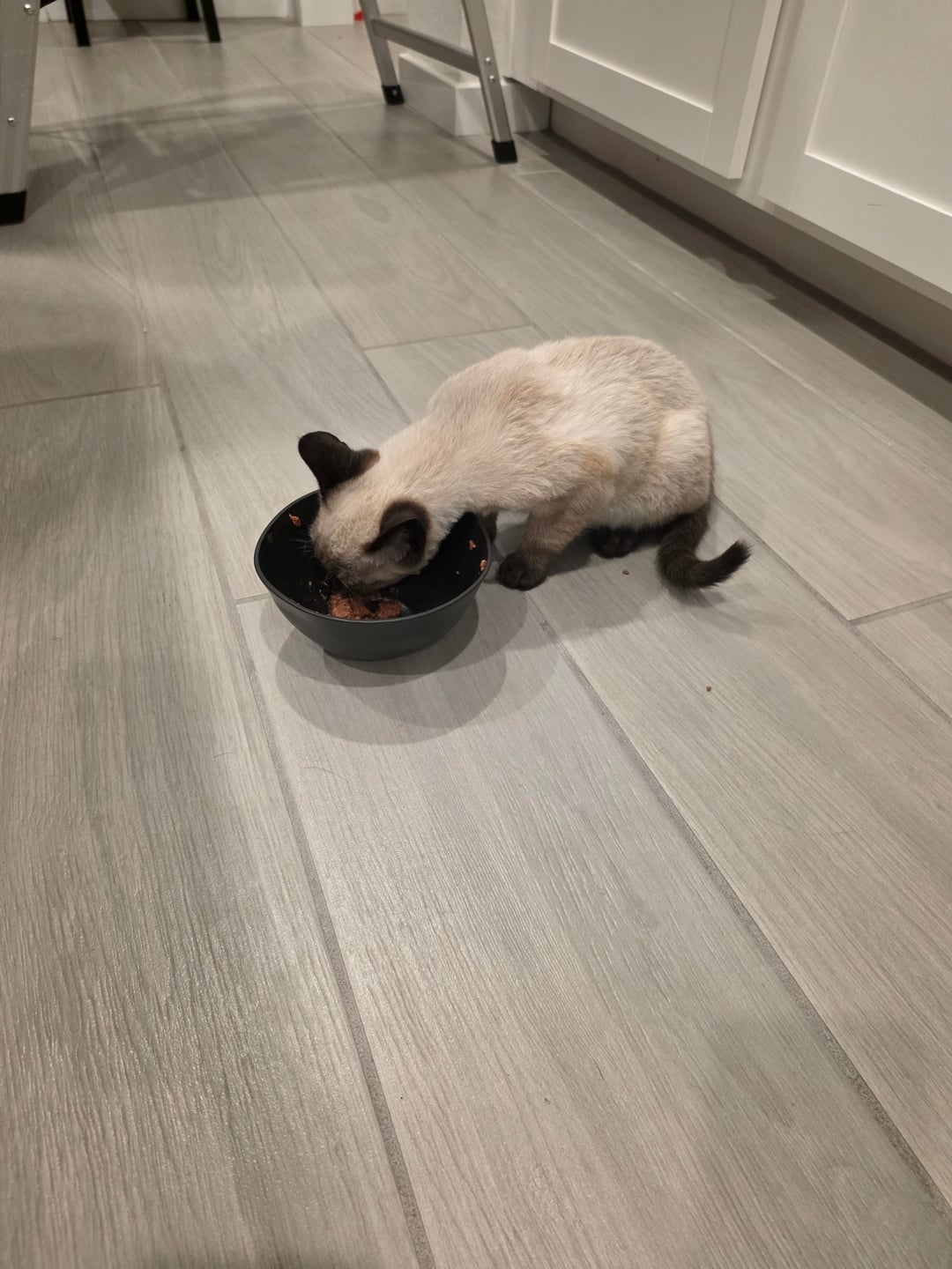 I thought it was my housemate who locked himself out, but turns out, it was this little buddy who came right on in. Got along decently with my dog, and now we're at the vet to check him out. We think he must have tried to get too close to a fire or under a car to try to get warm last night bc his left whiskers and fur are singed 😭