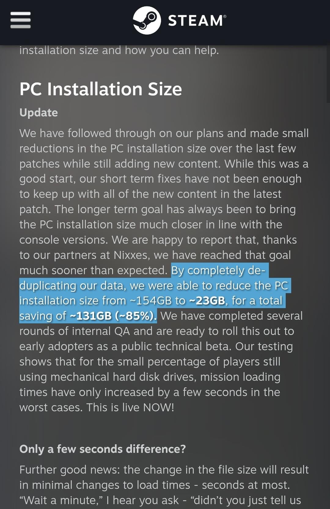 EDIT: Thanks to their teamwork with Nixxes, to reach this file storage optimization goal