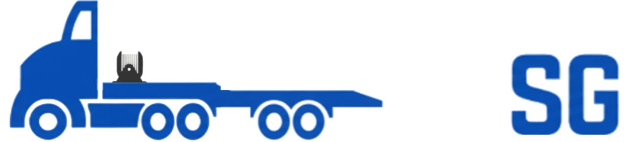 - A single cable comes out of the winch drum, runs backward on the ground, and attaches to the letters “SG”.