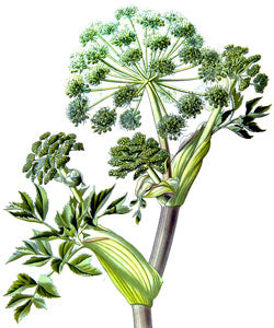 Herbalists of ancient European tradition praised Angelica archangelica as a panacea with special curative properties against contagious diseases. Legend has it that Angelica was revealed to a Benedictine monk by an angel to cure the plague. Modern clinical studies have shown that Angelica possesses constituents with antimicrobial and antiseptic properties. In The Complete Herbal, the legendary English physician and herbalist Nicholas Culpeper described Angelica’s ‘angelical virtues’ as the plant’s ability to ‘resist poison by defending and comforting the heart, blood, and spirits.’ Love of Angelica during this time earned it the name ‘root of the holy ghost.’