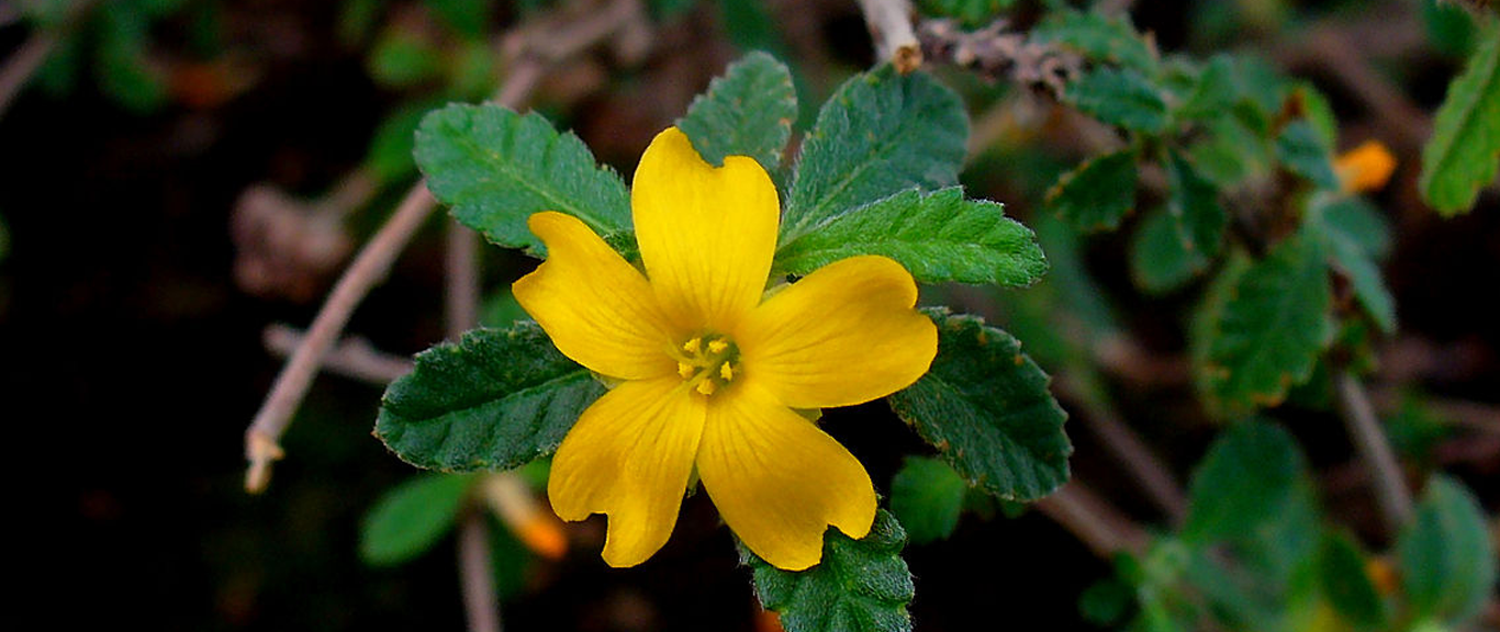 Damiana grows as a small sub-tropical shrub, adorned with serrated leaves annually and small yellow flowers in the summer months.