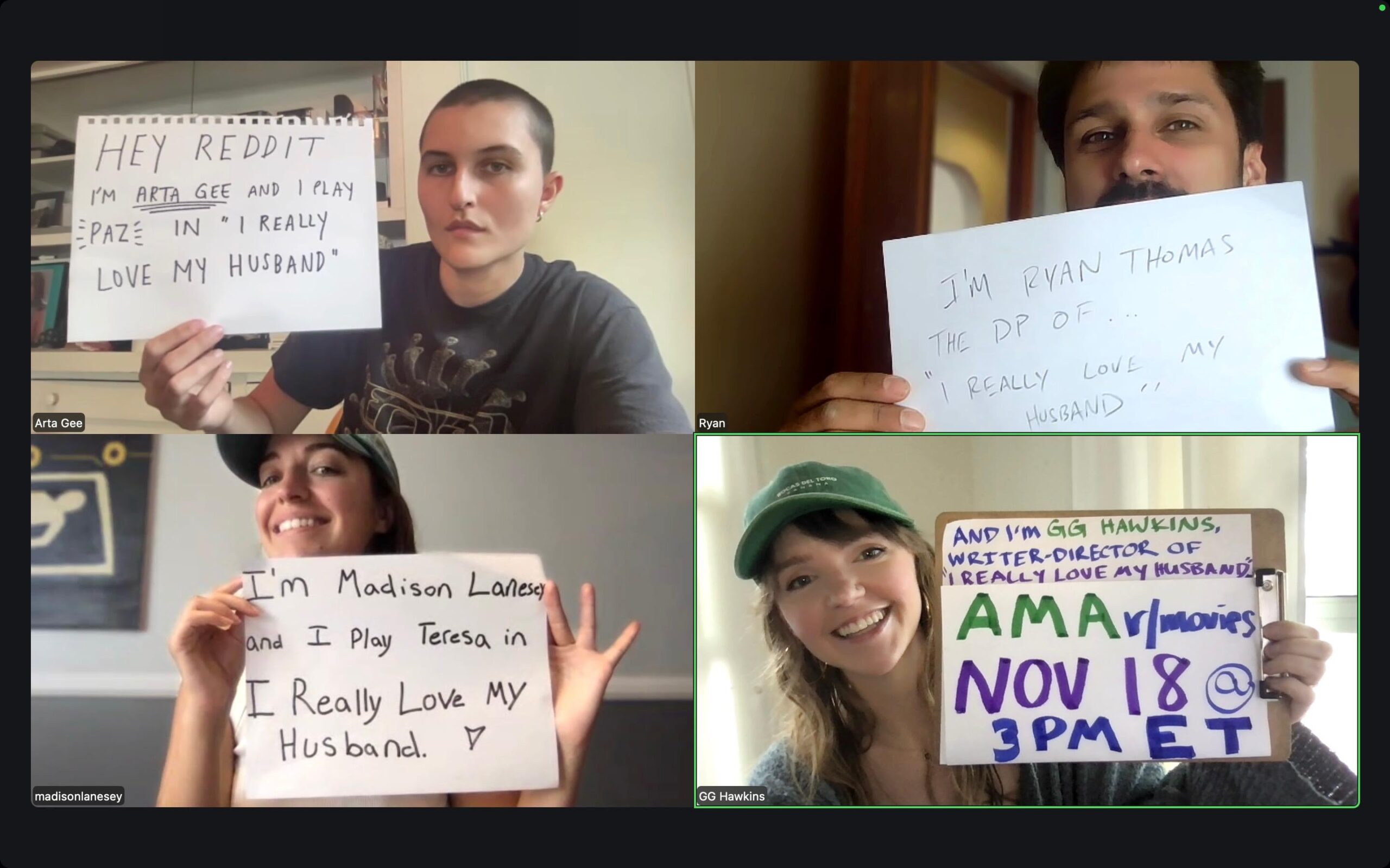 Hi reddit! We're the team behind I REALLY LOVE MY HUSBAND, a new rom-com with edge. We made this microbudget film on an island in Panama (sand fleas included!). It premiered earlier this year at SXSW. We are Arta Gee, Ryan Thomas, Madison Lanesey, and GG Hawkins. It's available on digital now.
