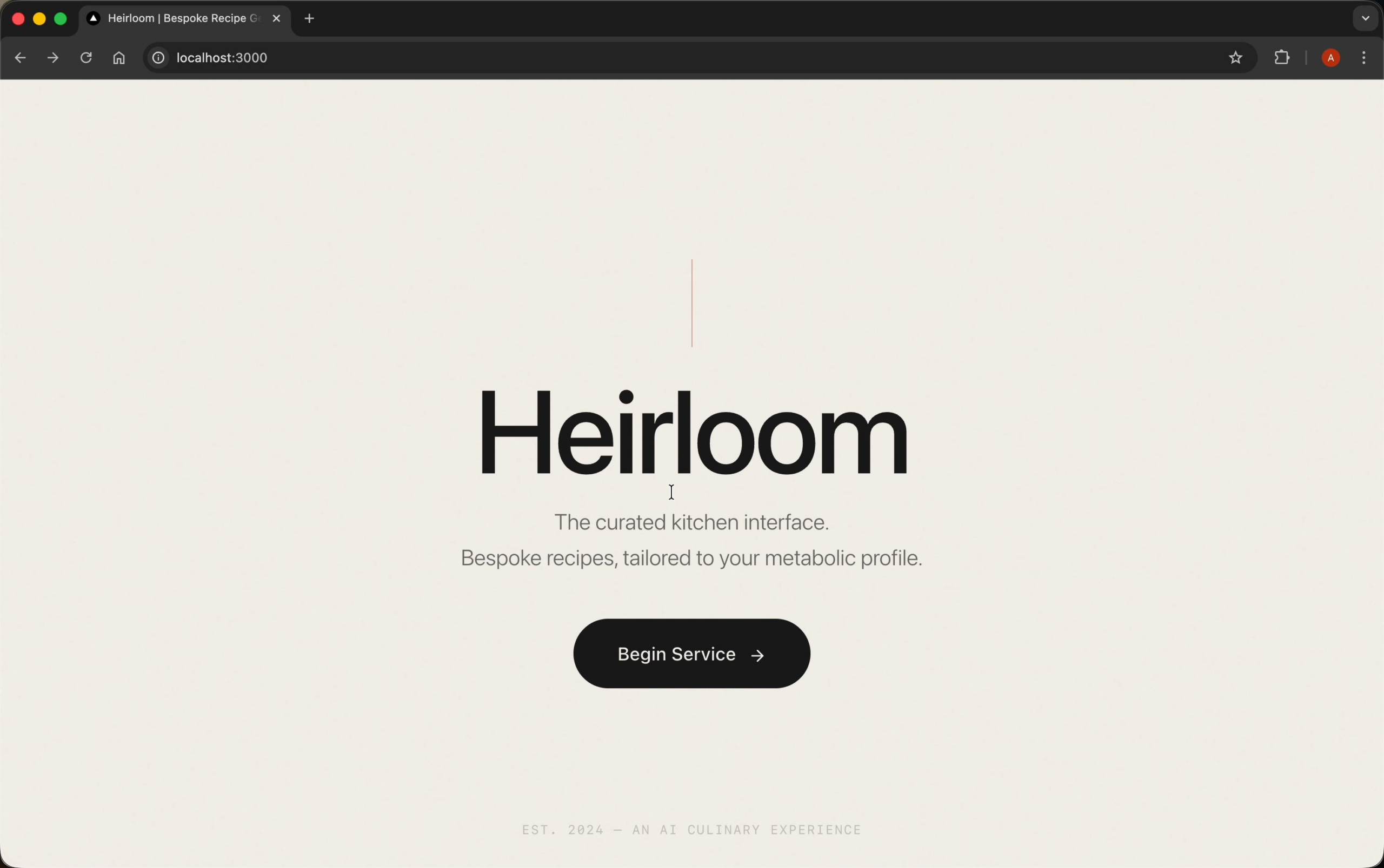 Design and develop a premium recipe generator web application using Next.js, delivering a polished, stunning, and world-class UI/UX experience—with a particular focus on creative, non-generic frontend design and distinctive, contextually appropriate visual character. The app must generate personalized recipes aligned with the user's specific health targets (to be provided or clarified).
