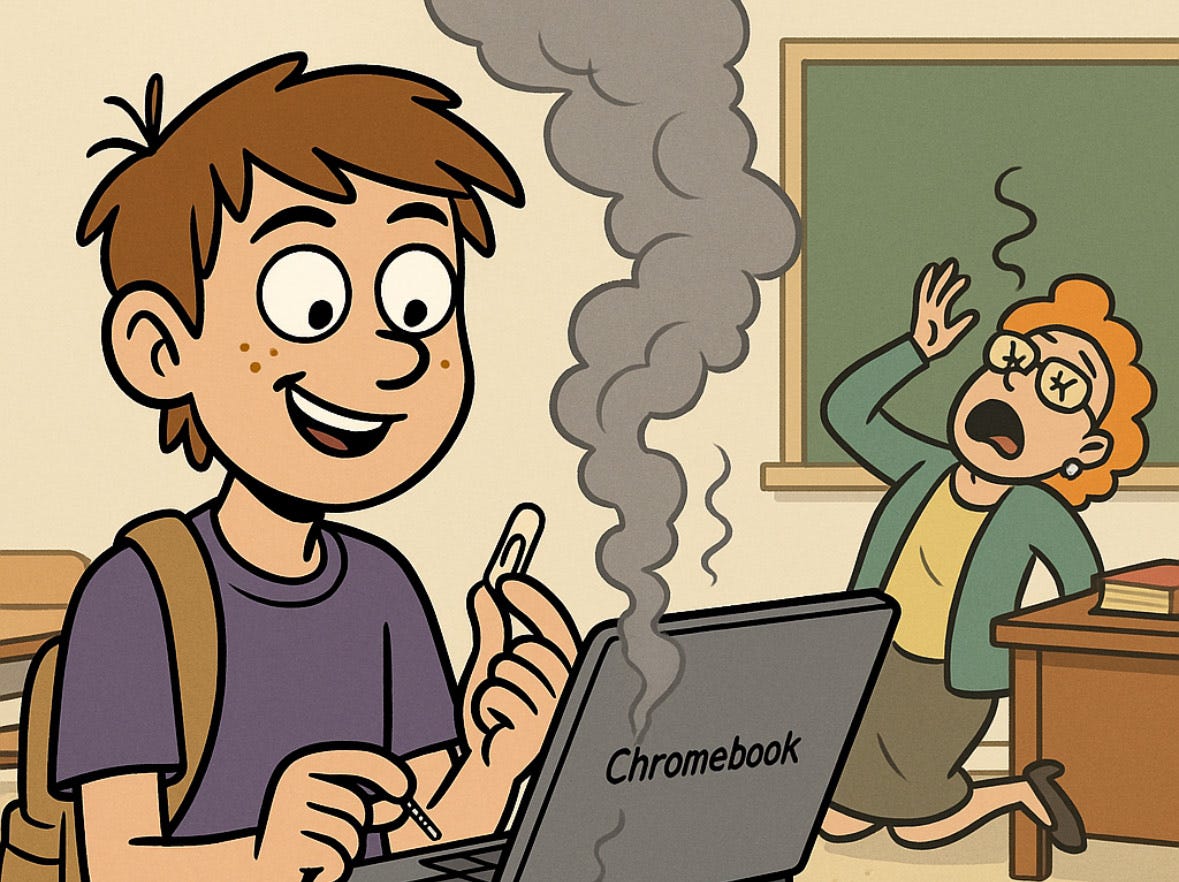This is the Chromebook Challenge, a dangerous social media trend that’s turned classrooms into low-budget Michael Bay sets. The goal? Jam metal objects into USB or charging ports, fry the motherboard, and rack up likes. Bonus points if there’s smoke. Extra bonus if it gets you suspended.