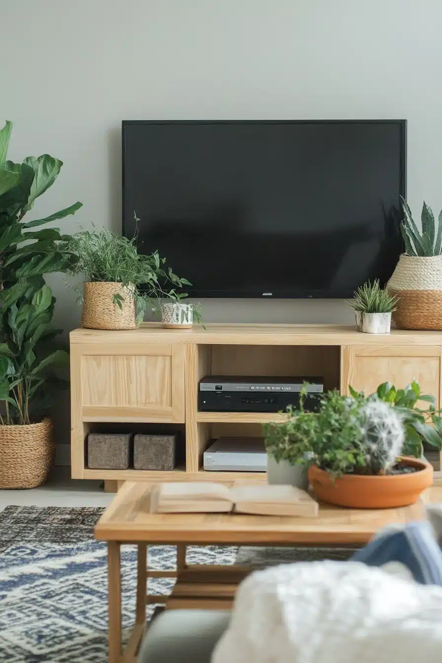 - Why It Works: Styling turns your entertainment center into a decorative focal point while keeping it functional.