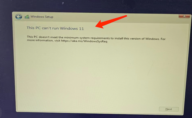 The Windows 11 installation wizard pops up as expected at first but the screen was stuck later, saying “This PC can’t run Windows 11”. It seems my PC does not meet the minimal requirements of Windows 11. Unfortunately, I don’t have the time and budge to build a new PC that is fully compatible with Windows 11 system requirements.