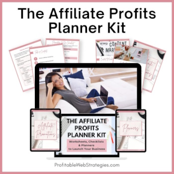 The Affiliate Profits Planner Kit gives you the worksheets, checklists, and planners you need to launch and grow a profitable affiliate business. Perfect for beginners or struggling affiliates—plan your niche, promotions, and content with ease and start building consistent affiliate income, step by step. Click here to get started