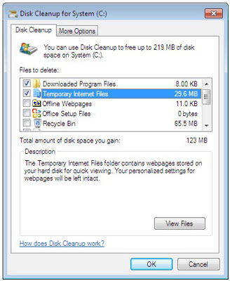 In the Files to Delete list, check the boxes next to the names of the files you want to remove and clear the boxes next to any files you want to keep. Click the Clean Up System Files button.